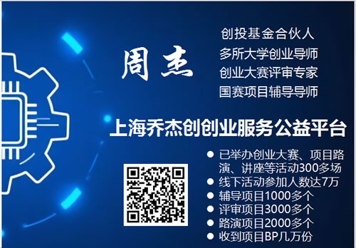 创始人 周杰:乔杰创创业服务公益平台创始人、天使投资人、上海隽赐股权投资基金合伙人、前海弘晖股权投资基金上海合伙人、水滴石天使投资基金合伙人、复客中国创业学院副院长、上海枭林投资管理有限公司副总裁、上海市杨浦青年创业指导服务中心副主任;教育部中国“互联网+”大学生创新创业大赛上海赛区优秀指导教师;同济大学、上海大学、东华大学、复旦大学、上海团市委等多所高校和单位的创业导师;科技部中国创新创业大赛上海赛区、上海团市委“创青春”上海青年创新创业大赛、上海市科委“创业在上海”国际创新创业大赛、中国MBA创业大赛中东部赛区、复旦大学、上海大学、同济大学等多个上海市级或校级创业大赛的决赛评委;教育部“互联网+”大赛、团中央“创青春”和“挑战杯”大赛、人社部博士后创业大赛、农业部农创大赛、科技部中国创新创业大赛等多个国赛的上海获奖创业项目的赛前辅导导师;5年成功创业经验,10多年投资经验;联系微信号:66412239 。